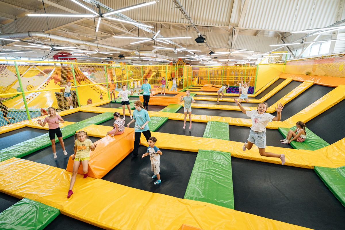 Улюблений атракціон як для дітей, так і для дорослих. Безумовно, це атракціон, який сприяє поліпшенню настрою, самопочуття, координації, збільшення фізичної витривалості і несе загальнозміцнюючу дію на людину. Тут можна злетіти вище всіх і з усього маху приземлитися в м'яку поролонову яму. У басейні з різнокольоровими поролоновими кубиками приємно просто знаходиться, пірнати, здійснювати імітацію плавання або навіть влаштувати справжню "битву" кубиками.